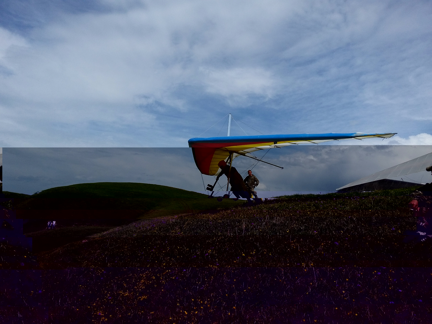 Четвертый день! После трех часов езды по горным дорогам мы нашли заезд на старт и благополучно слетели. Летали недолго, встретила знакомых париков