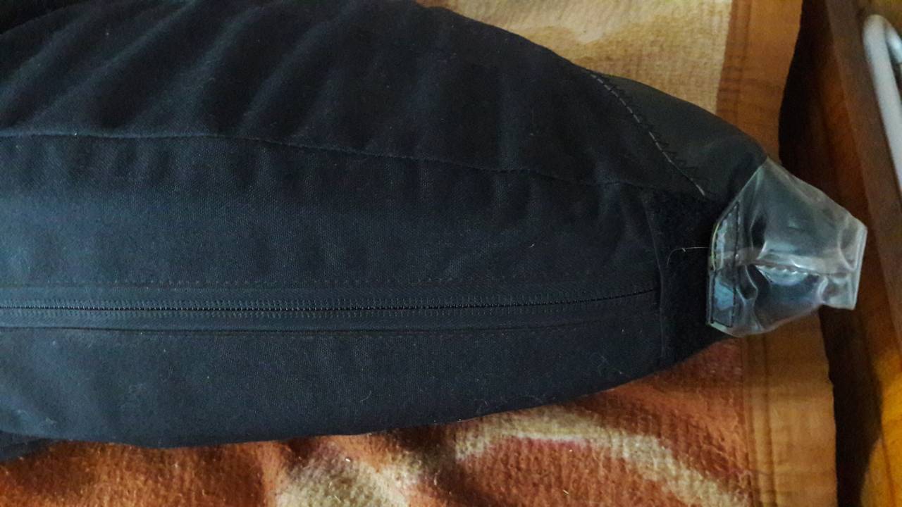 Обхват моей груди, без одежды, 105-107см. По заднице (в трусах) -103 см. Померил подвеску в развернутом состоянии от замка до замка, на уровне груди (внутренний размер, естественно), размер составил 121 см. Затолкал обувь 44 размера (без проблем), мой размер обуви 42-43