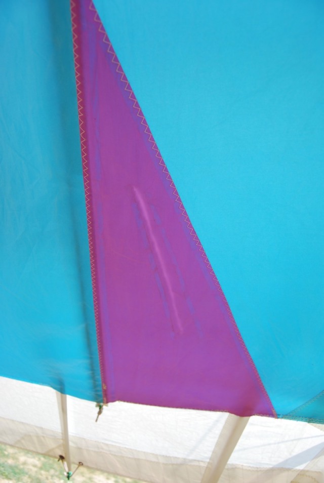 На парусе есть небольшой качественно отремонтированный разрыв, это досталось от предыдущего владельца, венгра. На летные качества никак не влияет, без залезания в парус этого даже не заметить (красивая заплаточка даже с другой стороны присутствует для симметрии, выглядит как элемент дизайна :). На фото видно.