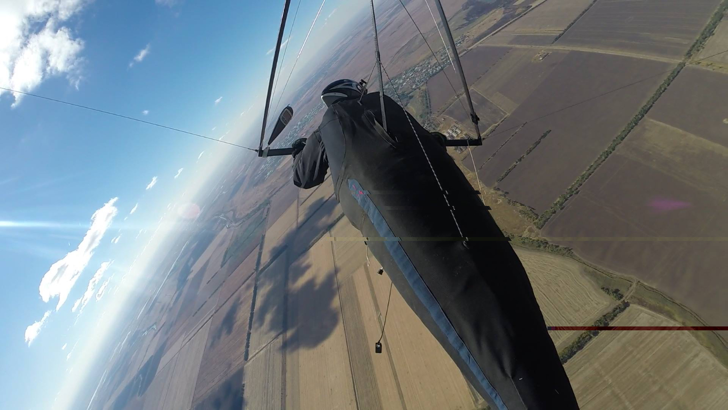 Хочу поблагодарить Андрея и остальных Ростовских парней за организацию и за то,что высмотрели в октябре улетную погоду.Я этот сезон практически не летал,так как был занят работой,и уже думал,что все,в этом году я не хапну термичку.Но благодаря Ростовчанам мне удалось даже бахнуть маршрутик в 83км. Конечно было очень холодно,мне показалось,что даже парус задубел и полиспаст работал очень тяжело. Я очень обрадовался,когда летя по маршруту увидел приземлившегося Андрея, и то что я забыл телефон это было второстепенная причина моей посадки.Ужасно с непривычки болели руки,а пальцы я вообще перестал чувствовать от холода.Мои перчатки оказались совсем негодными,даже химгрелки не помагли. На второй день Андрей мне одолжил свои перчатки и краги,вот это вещ! Удалось сразу зацепиться за +2 ,выбрался на 2200 залетел в космы,но там началась такая дискотека,что я от туда еле свалил. По курсу стояла голубая дыра,пытаясь ее облететь потерял много высоты и так и не найдя хорошего потока забомбился в 35 км от старта