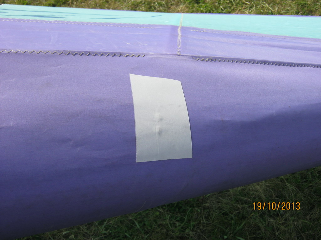 Могу прислать такого сиреневого материала необходимого размера, чтобы аккуратно заклеить и так в глаза не бросалось. Видимо, уже новому владельцу.