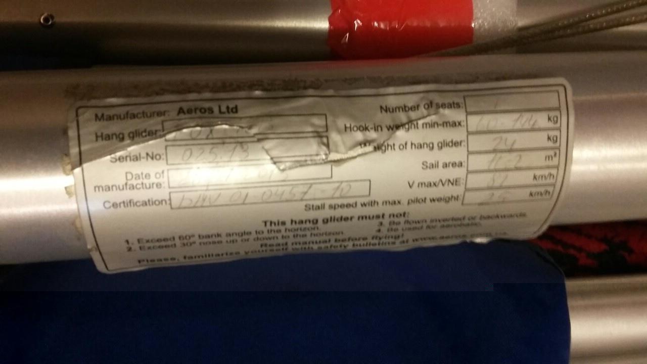 Почему продаю. В августе 2016-го отца не стало. Сам я программист, от полетов человек далекий, поэтому ни мне, ни моей семье дельтаплан не нужен. Откуда тогда знаю спецификации? Раньше отец уже собирался продавать свой дельтапарк, потому что понадобились деньги, однако, не продал. Тем не менее, объявления на форуме сохранились (viewtopic.php?t=2712), и из них пополам с тем, что удалось вспомнить из рассказов отца, удалось извлечь кое-какие существенные технические детали.