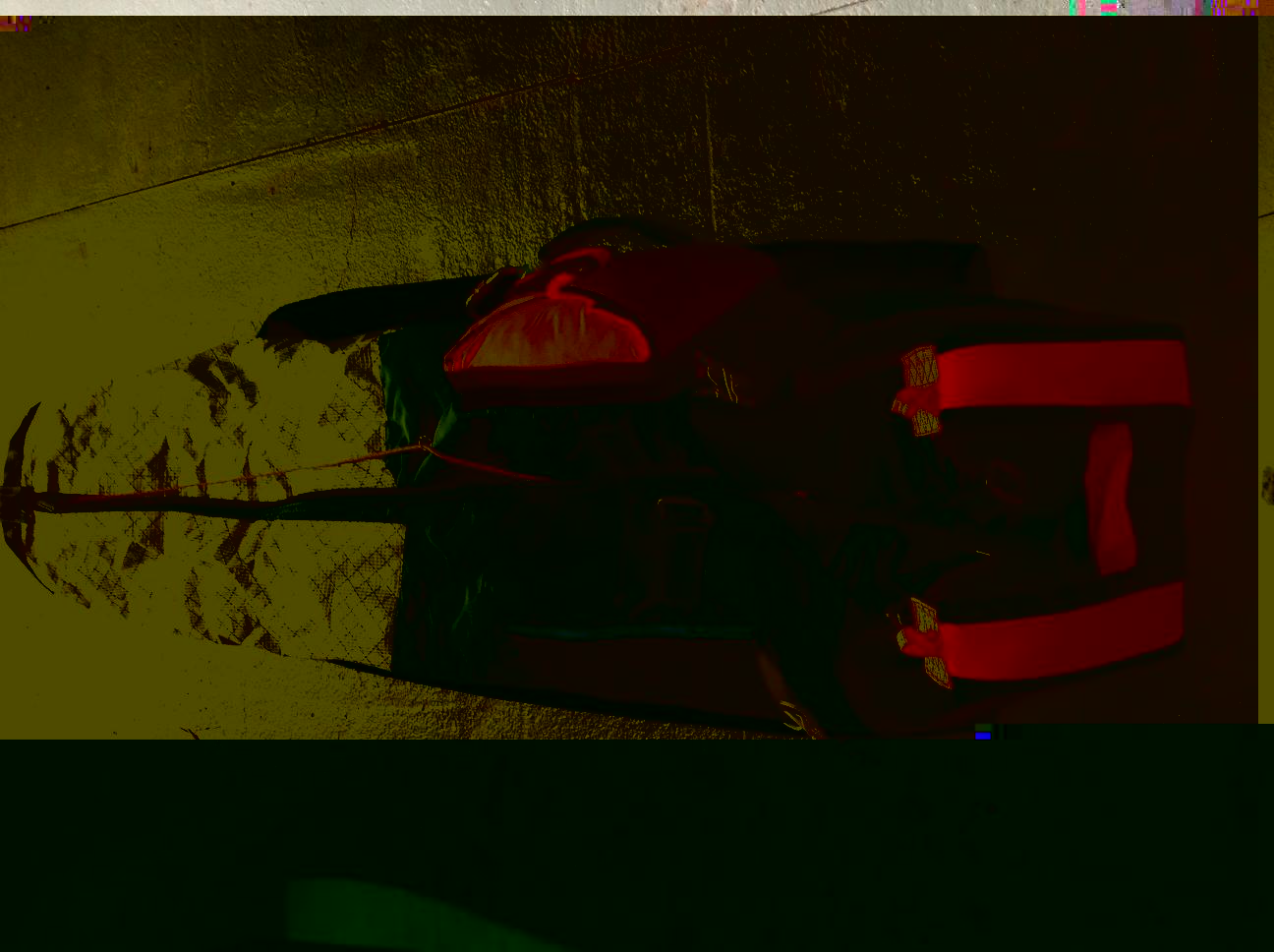 Парашют производство КДС МАИ, площадь 27м.кв., ткань F-111, вершина втянута. Фал парашюта крепится к пластине и ножным обхватам. Парашют не применялся.